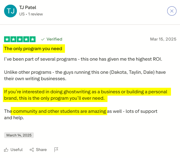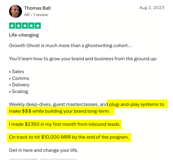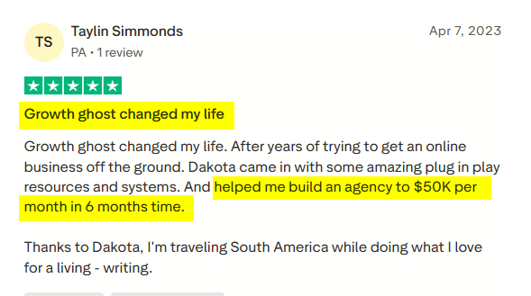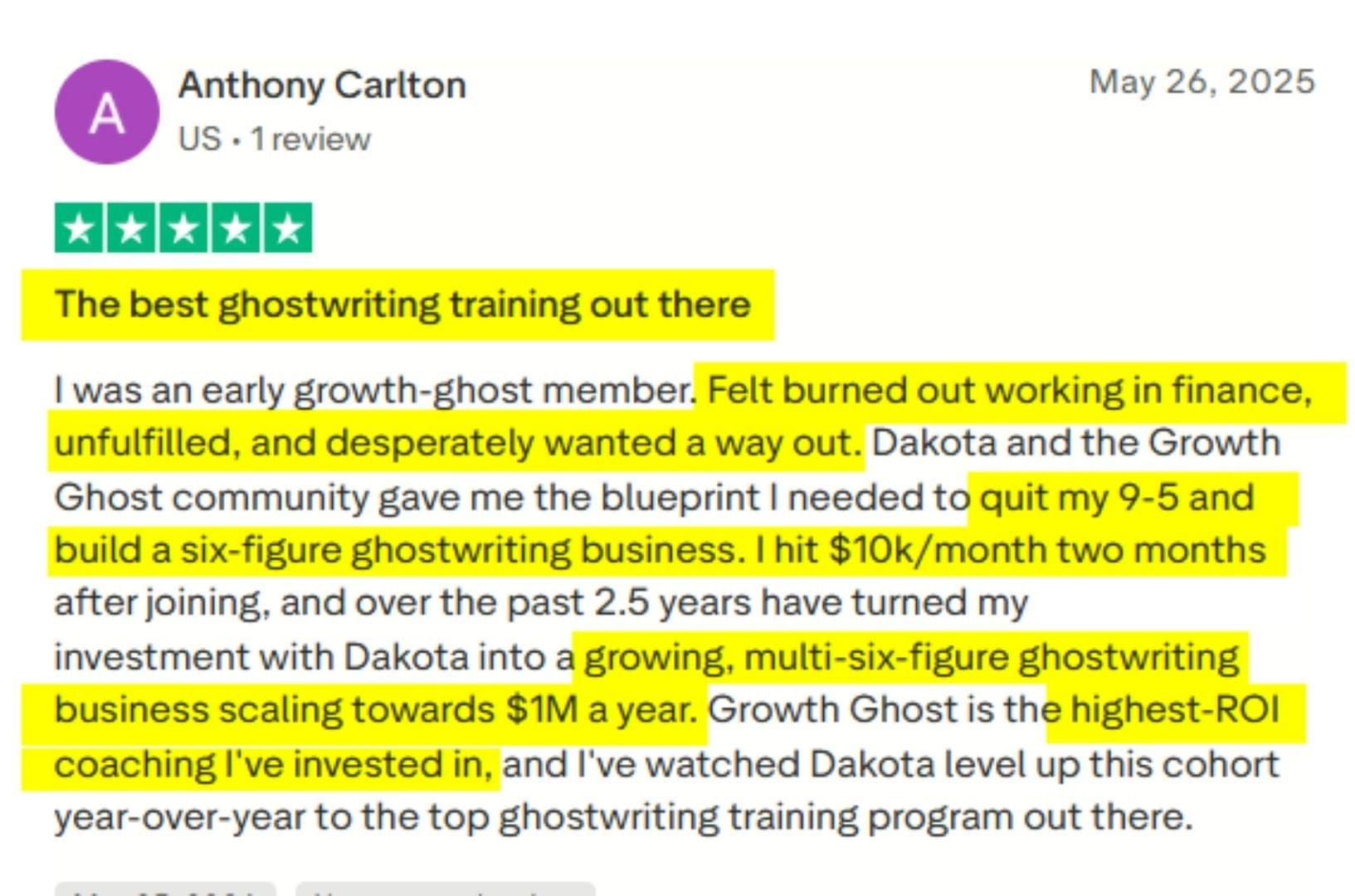 Fast forward to today, I've built multiple successful ghostwriting agencies that run on systems, allowing me to work from anywhere, achieve complete time freedom, and help hundreds of people escape their 9-to-5 prisons.